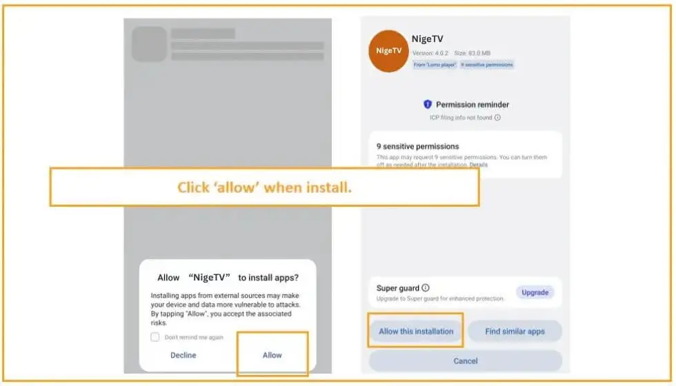 2. Allow your device to install app.
